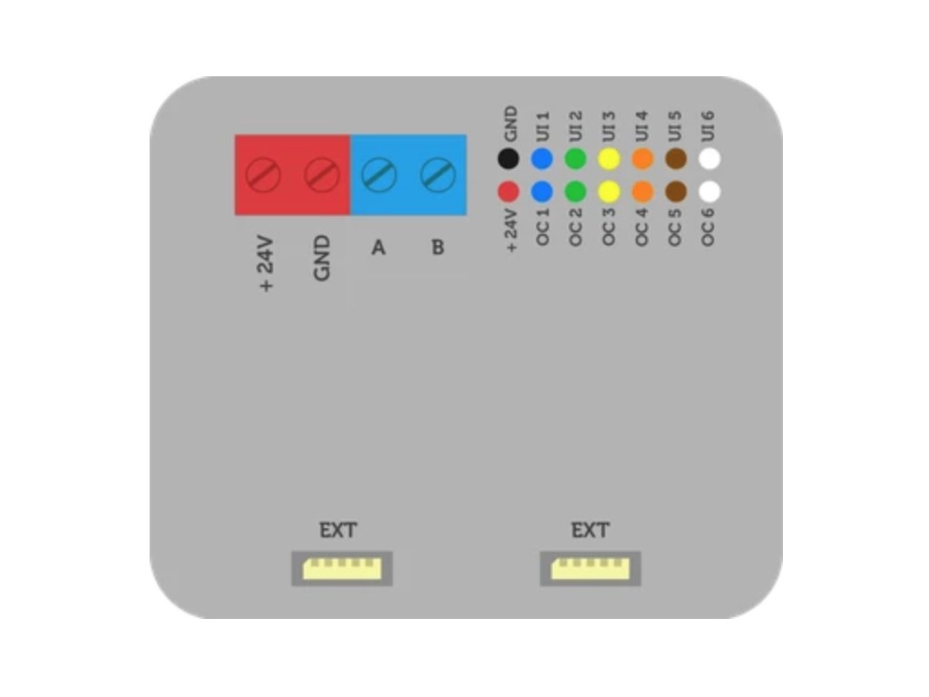 | Výstupy | +24V, UO 1, UO 2, UO 3, UO 4, UO 5, UO 6 |