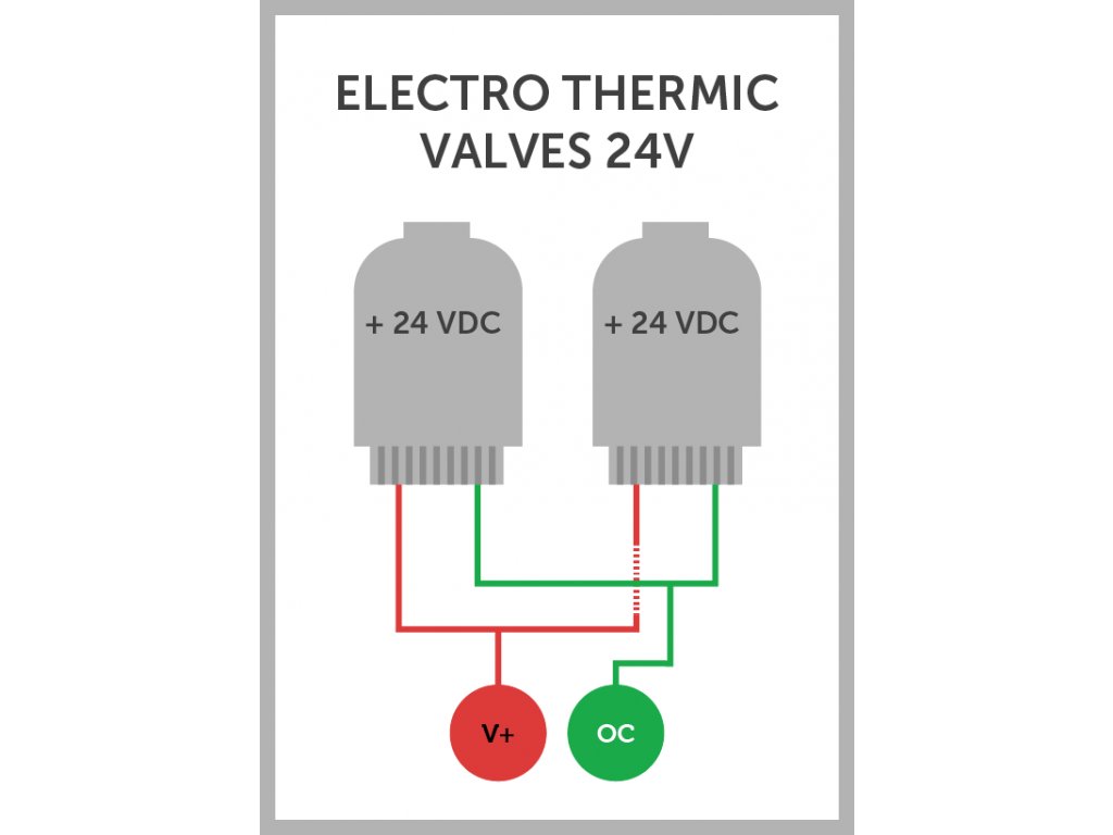 - 6 outputs with open collector, maximum current 600mA @ 30VDC for each output, maximum 2A continuous on all outputs together