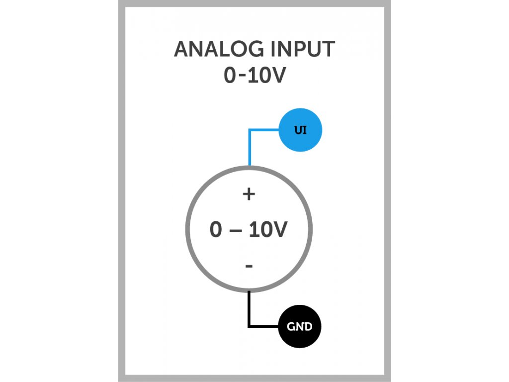 - Analog 0-10V inputs with 0-12VDC voltage measurement range, single-ended type, 8-bit resolution, 0.1% full-scale accuracy, input impedance > kOhm, normal mode rejection 50 dB at 55 Hz, conversion time 1250 milliseconds