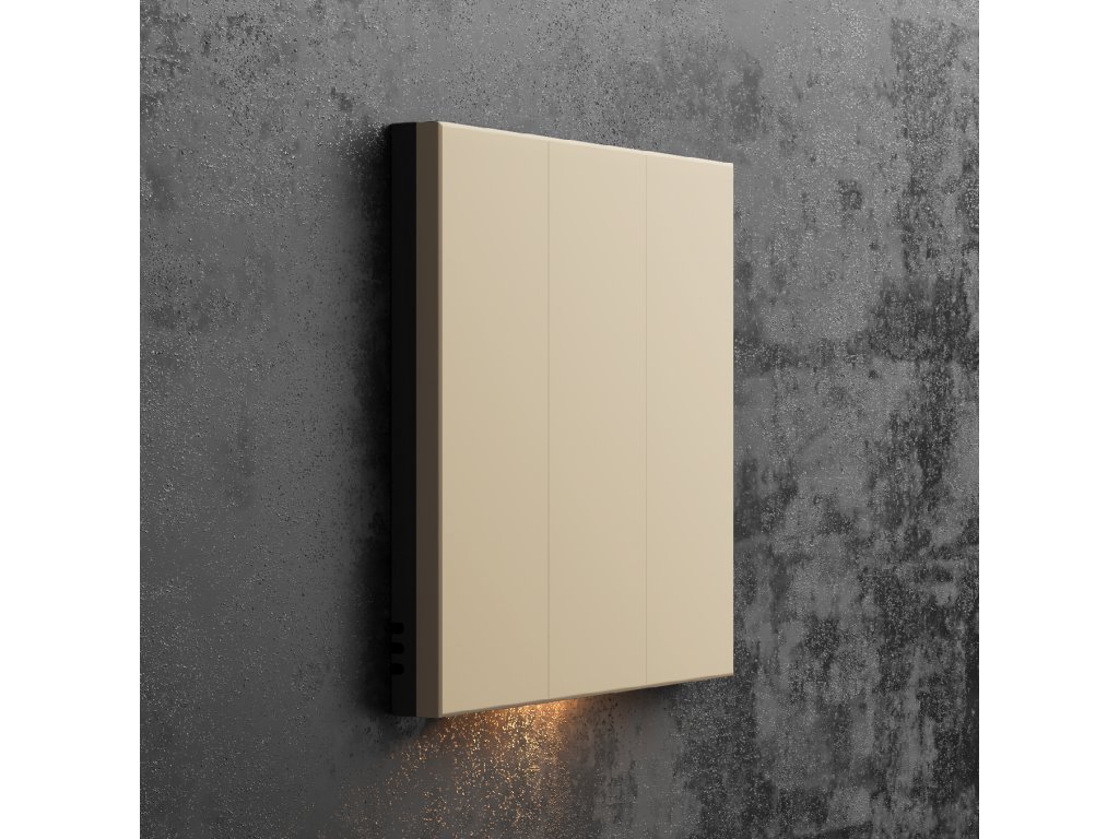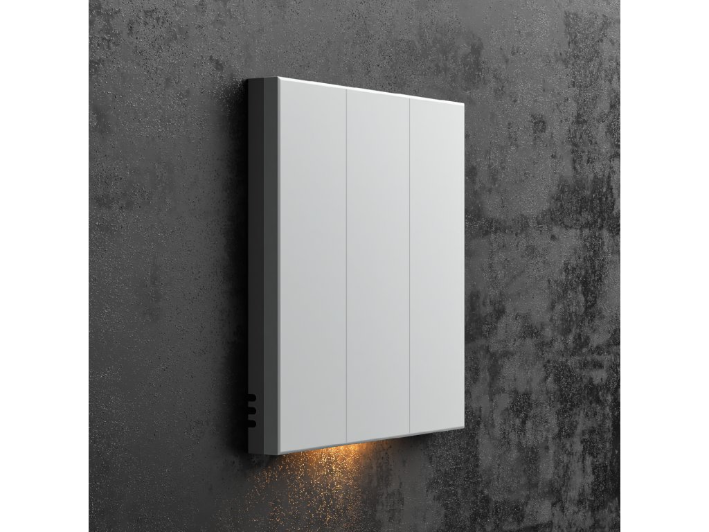 Elegante e funzionale. Grazie alla bassa riflettività della luce, l'interruttore è opaco, piacevole al tatto e anti-impronte. 5 o 6 ingressi configurabili per il controllo luci o tapparelle. Include la misurazione di temperatura e umidità. Luce notturna dimmerabile dal basso.